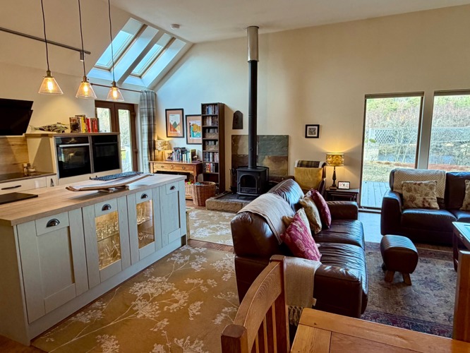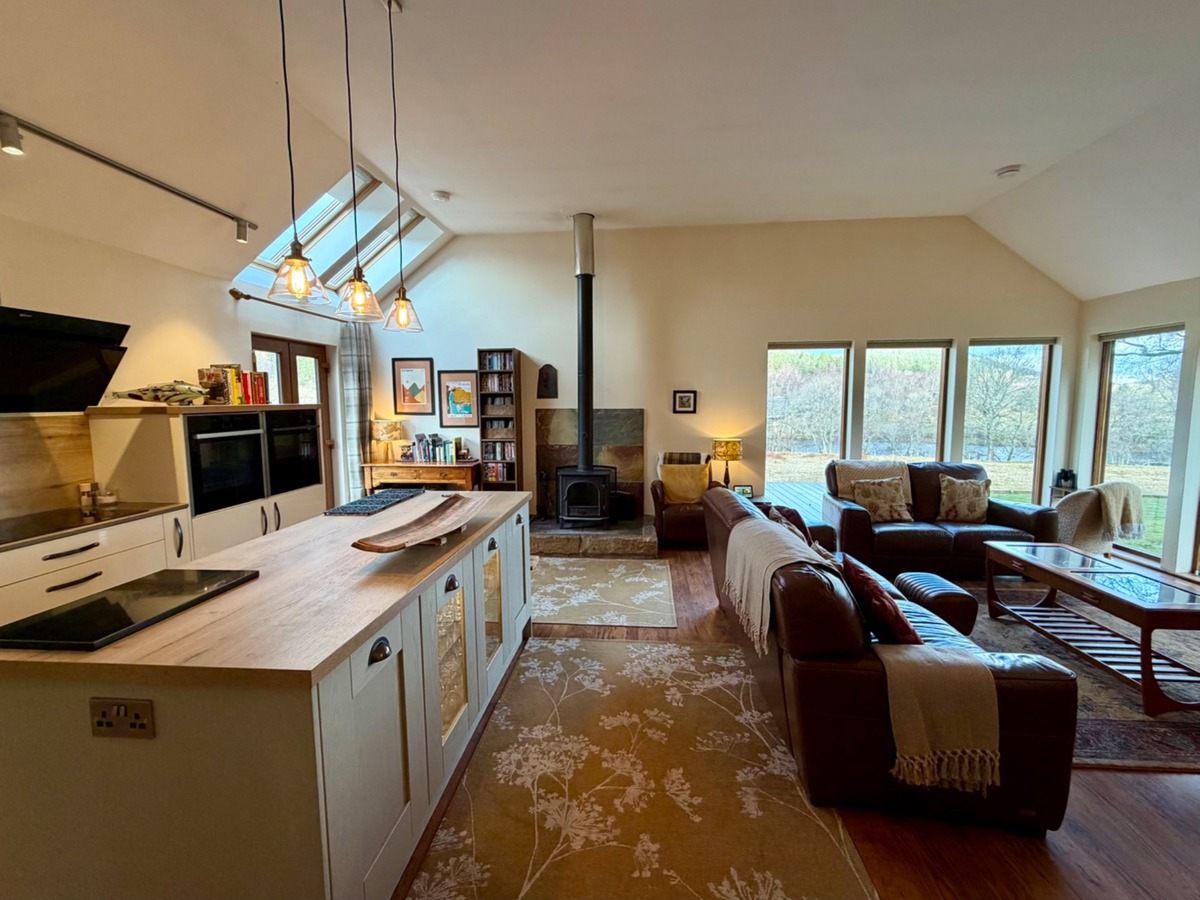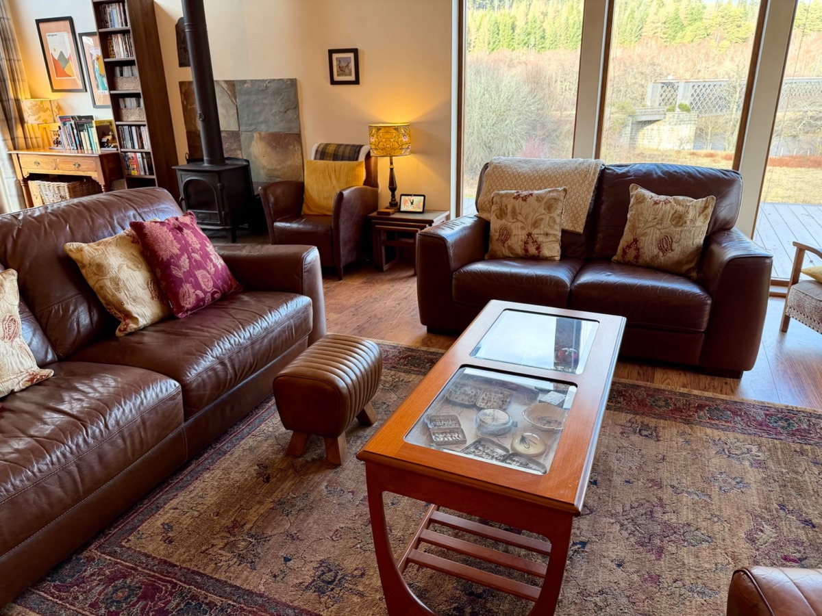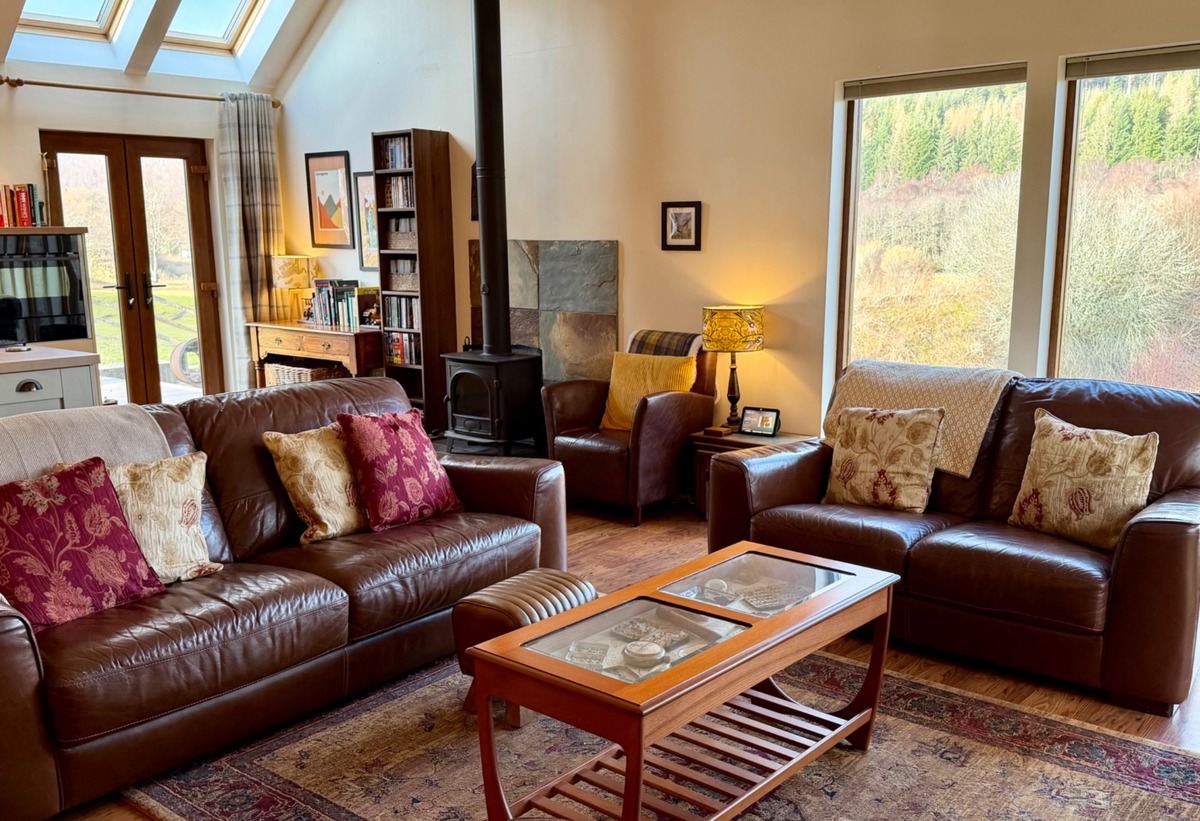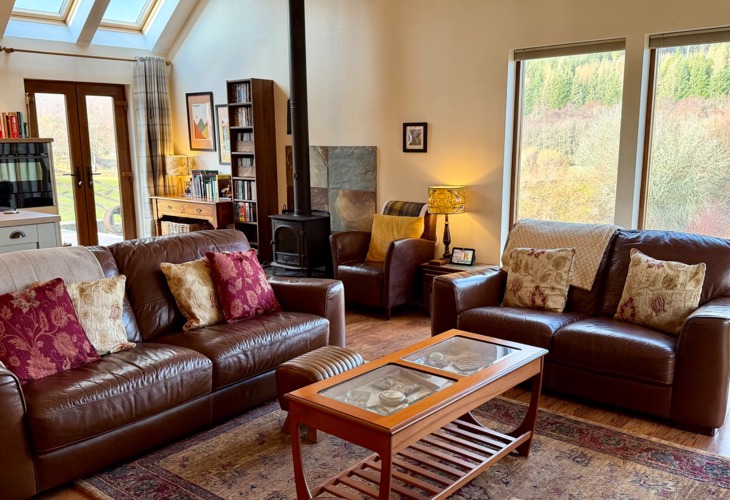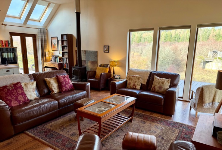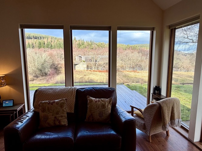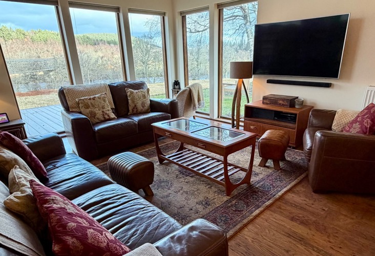 The comfortable and bright living space overlooks the River Spey and the Speyside Way