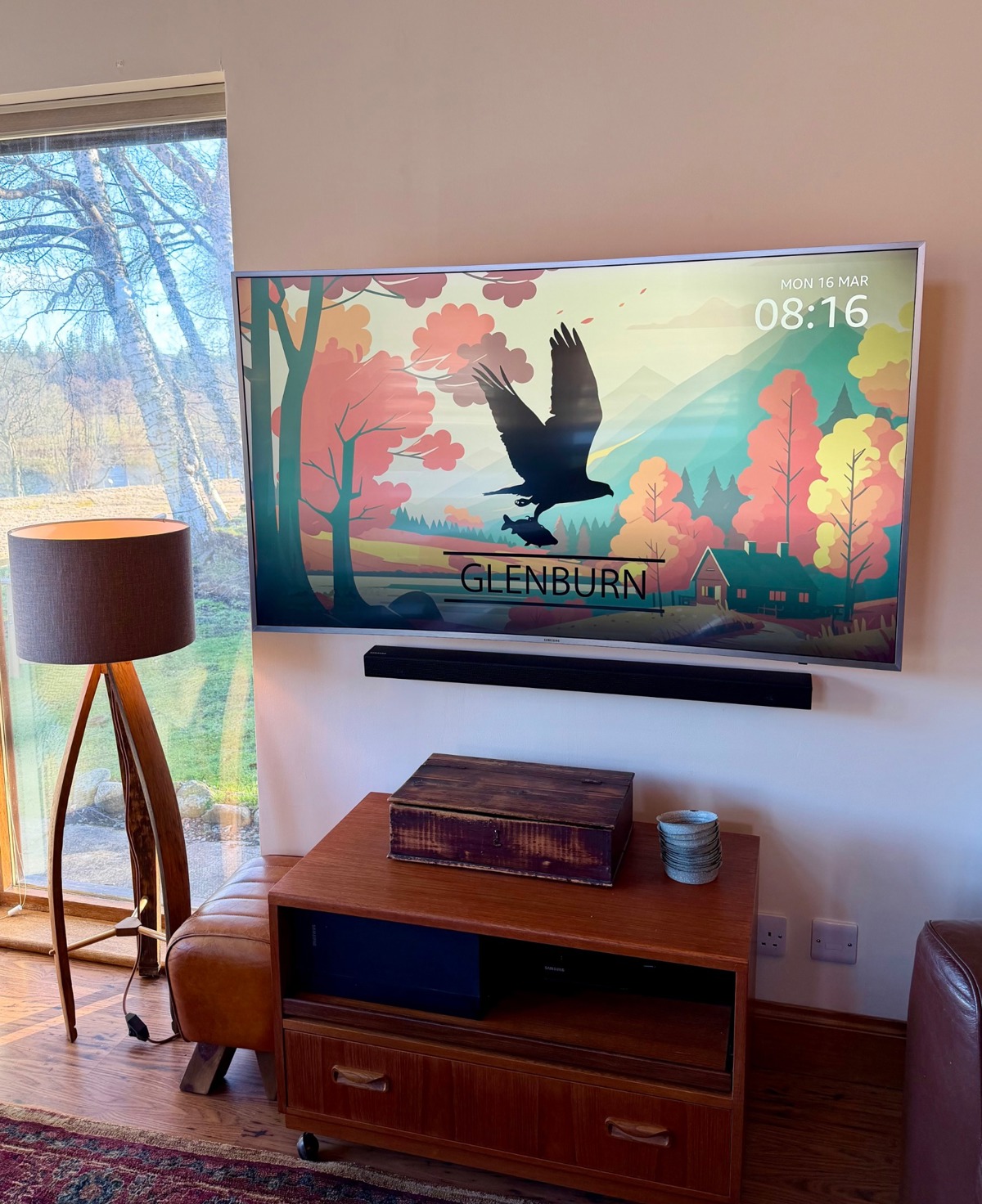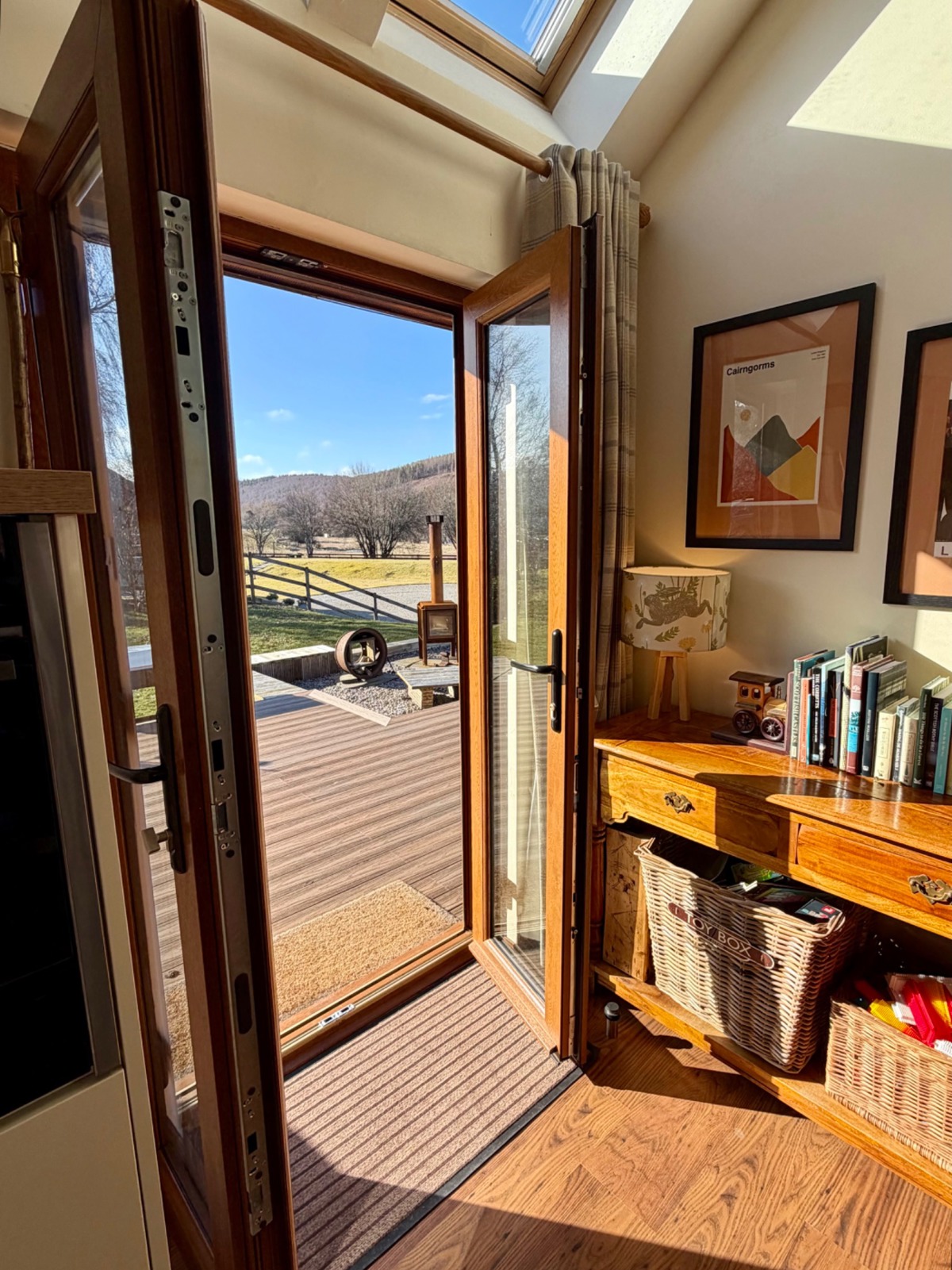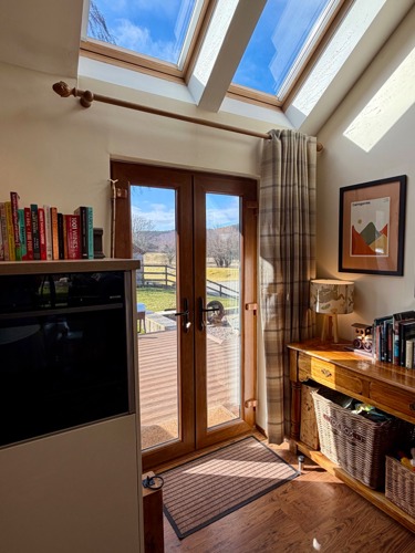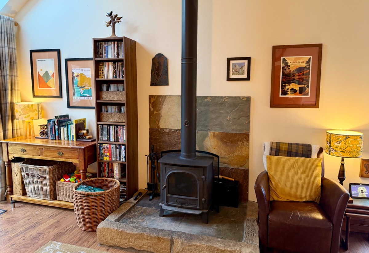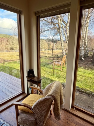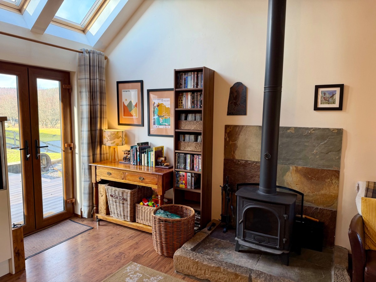 The comfortable and bright living space overlooks the River Spey and the Speyside Way