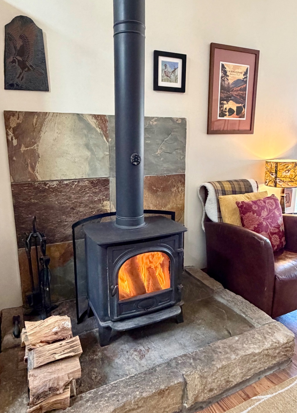 Central heating plus a wood-burning stove ensure that you'll always be cosy