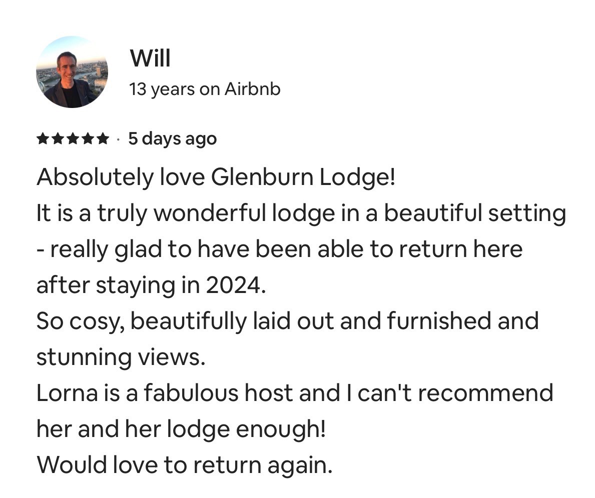 Glenburn is my new venture, ready to welcome guests from spring 2025; reviews will appear here once available.